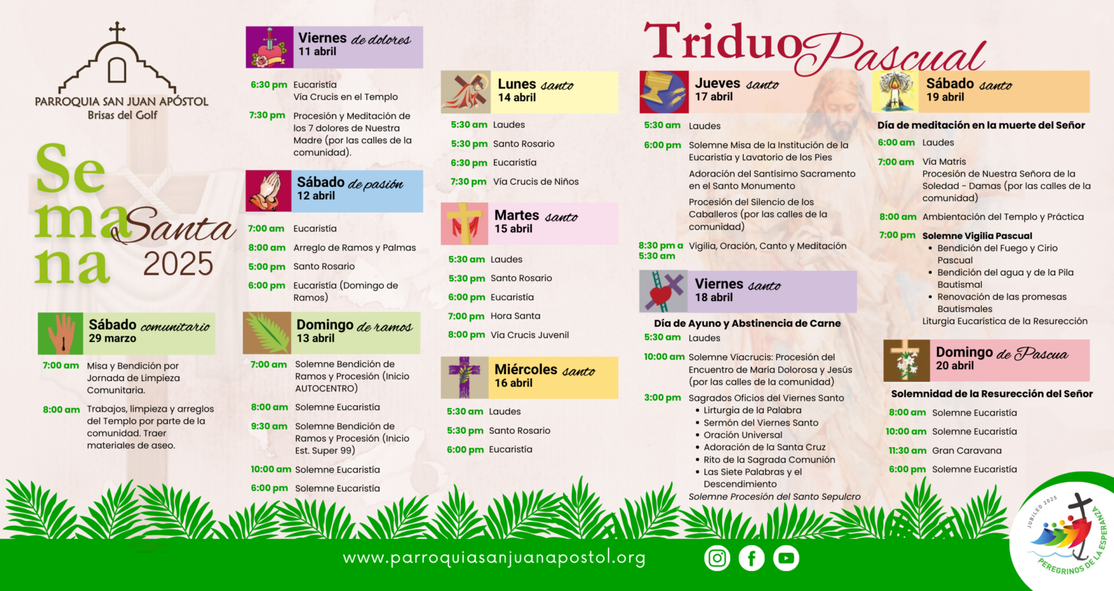La Parroquia San Juan Apóstol de Brisas del Golf invita a toda la comunidad a participar activamente de las celebraciones y actividades espirituales programadas para esta Semana Santa. Una oportunidad para renovar nuestra fe…