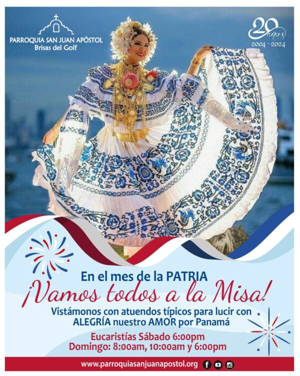 En este mes de noviembre nuestra patria está de fiesta, honrémosla vistiendo nuestros mejores atuendos típicos en las Eucaristías de los fines de semana a partir del 03 de noviembre hasta el 24 de…