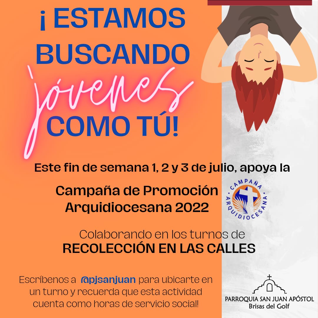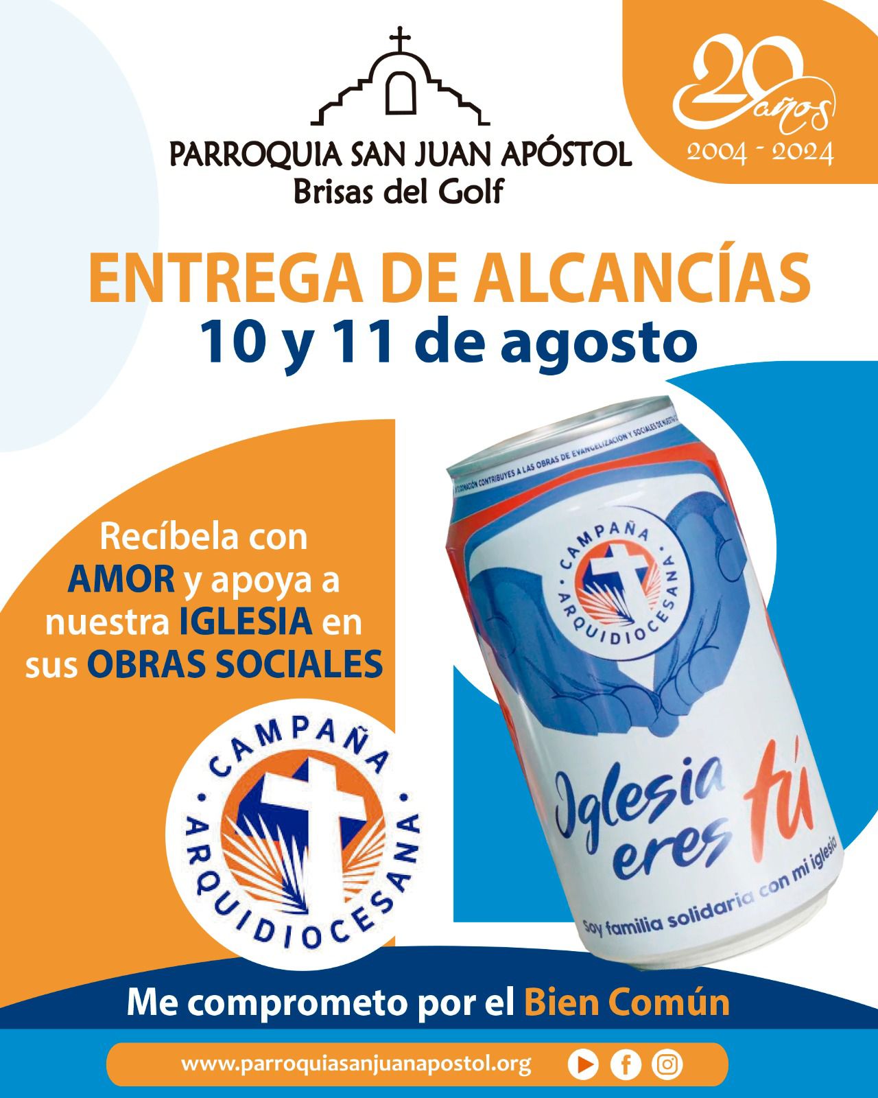 Querida comunidad parroquial, Este 10 y 11 de agosto, nuestra Parroquia San Juan Apóstol en Brisas del Golf, estará realizando la Entrega de Alcancías como parte de la Campaña de Promoción Arquidiocesana. Les invitamos…