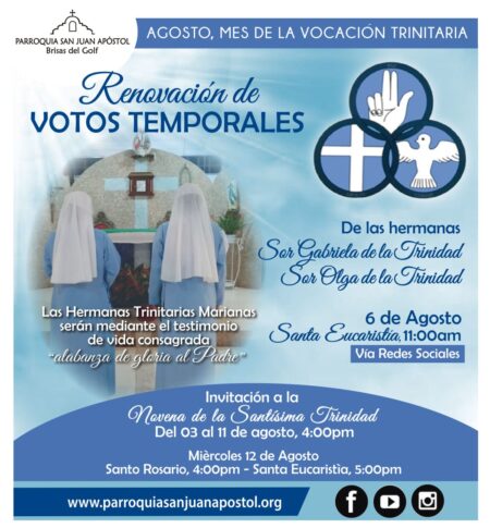 De las hermanas: Sor Gabriela de la Trinidad – Sor Olga de la Trinidad Fecha: 6 de Agosto de 2020Hora: 11:00 a.m. Vía: Redes Sociales