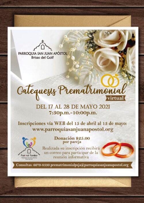 Información del Evento Fecha: 31 de Julio del 2021 – 5:00 p.m. Donación: B/. 5.00 Por Transferencia: Banco General, Iglesia Católica – Parroquia San Juan Apóstol, cuenta corriente: 03-66-01-118766-9 Directamente en la Secretaria Parroquial de…
