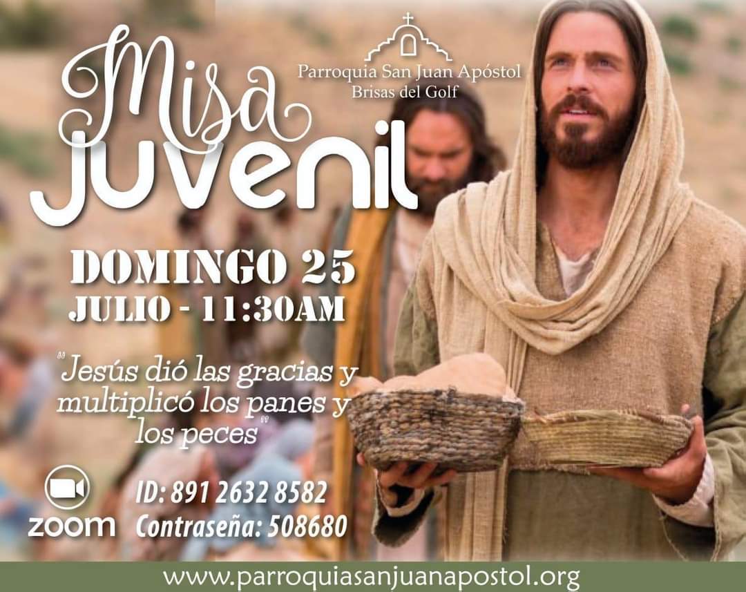 Acompáñanos a culminar la Fiesta del Perdón con la Misa Juvenil ✨ 🗓 Domingo 25 de julio⏰ 11:30 AM.Puedes unirte de manera presencial o por Zoom. ¡No te lo pierdas, el Señor nos llama…