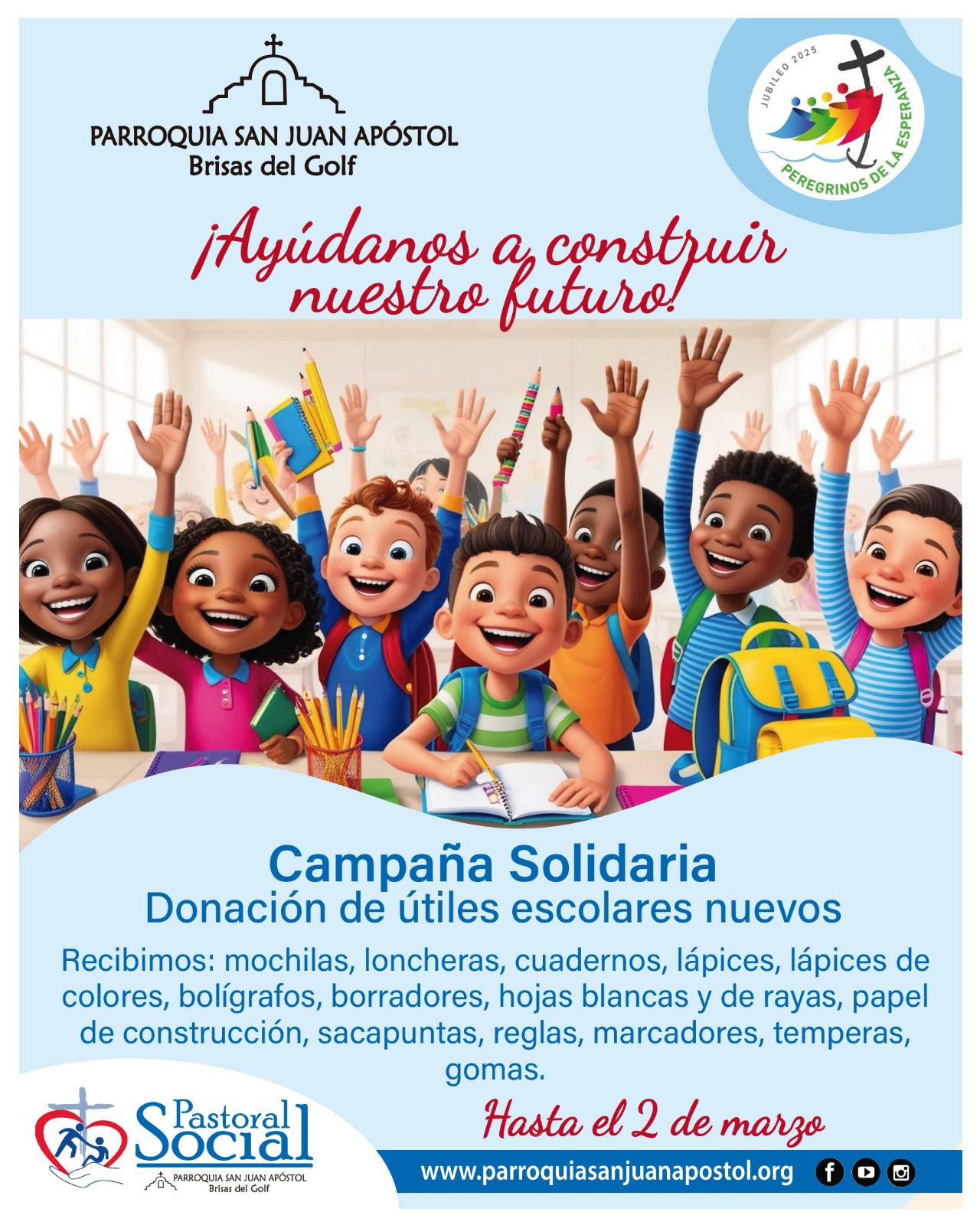 ♻️ ¡Juntos cuidemos el PLANETA! El próximo domingo 26 de octubre de 2025, de 9:00 a.m. a 12:00 m.d., tendremos una Jornada de Reciclaje en los predios de la Parroquia San Juan Apóstol – Brisas…