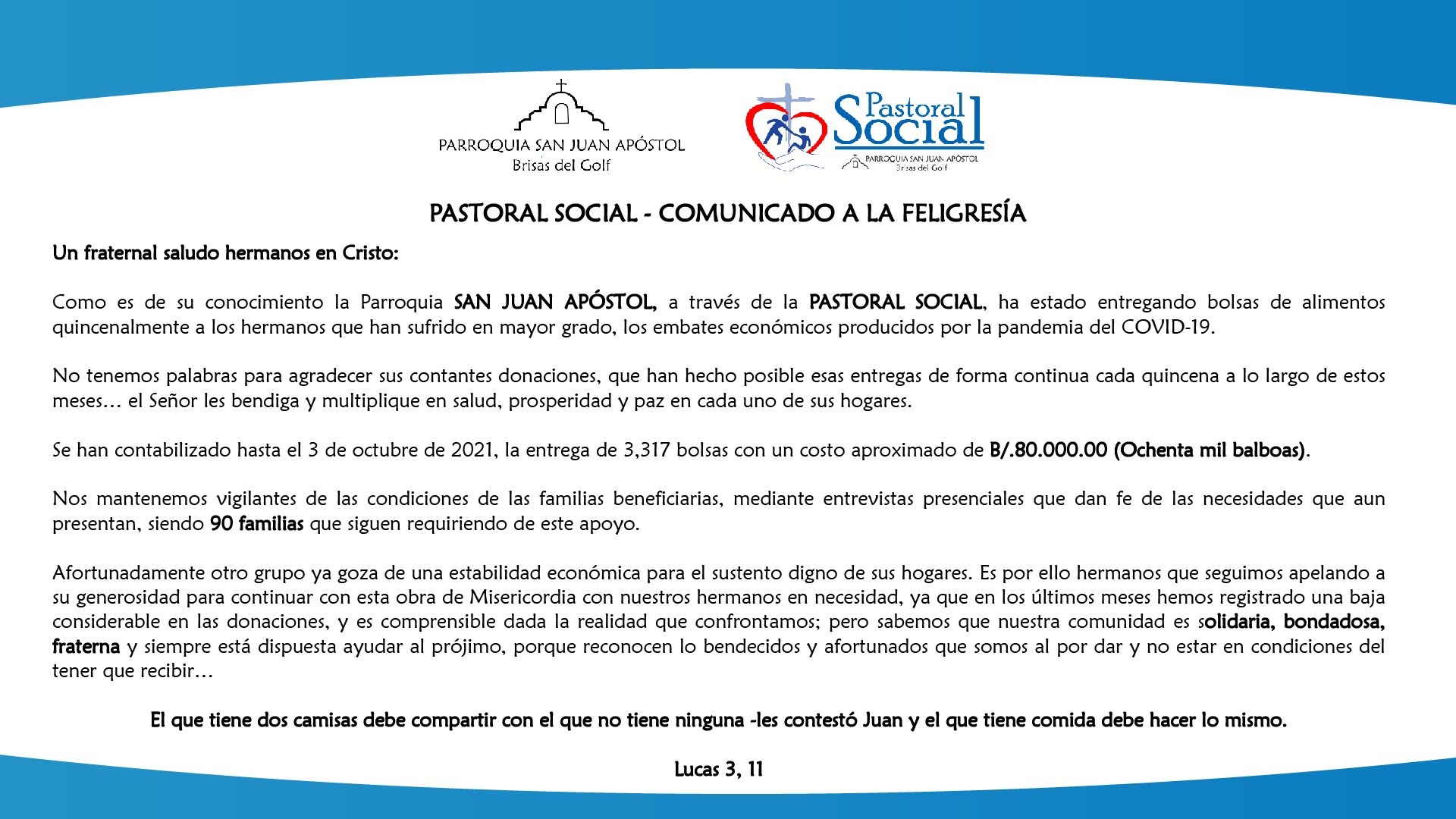 La Parroquia de San Juan Apóstol sirve a la comunidad de Brisas del Golf, Mesetas, Terrazas, Occidente, Brisas Norte y Capilla Cerro Viento Rural.