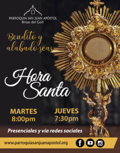 Te invitamos a participar de la Hora Santa, todos los martes a las 8:00 p.m. y los jueves a las 7:30 p.m.