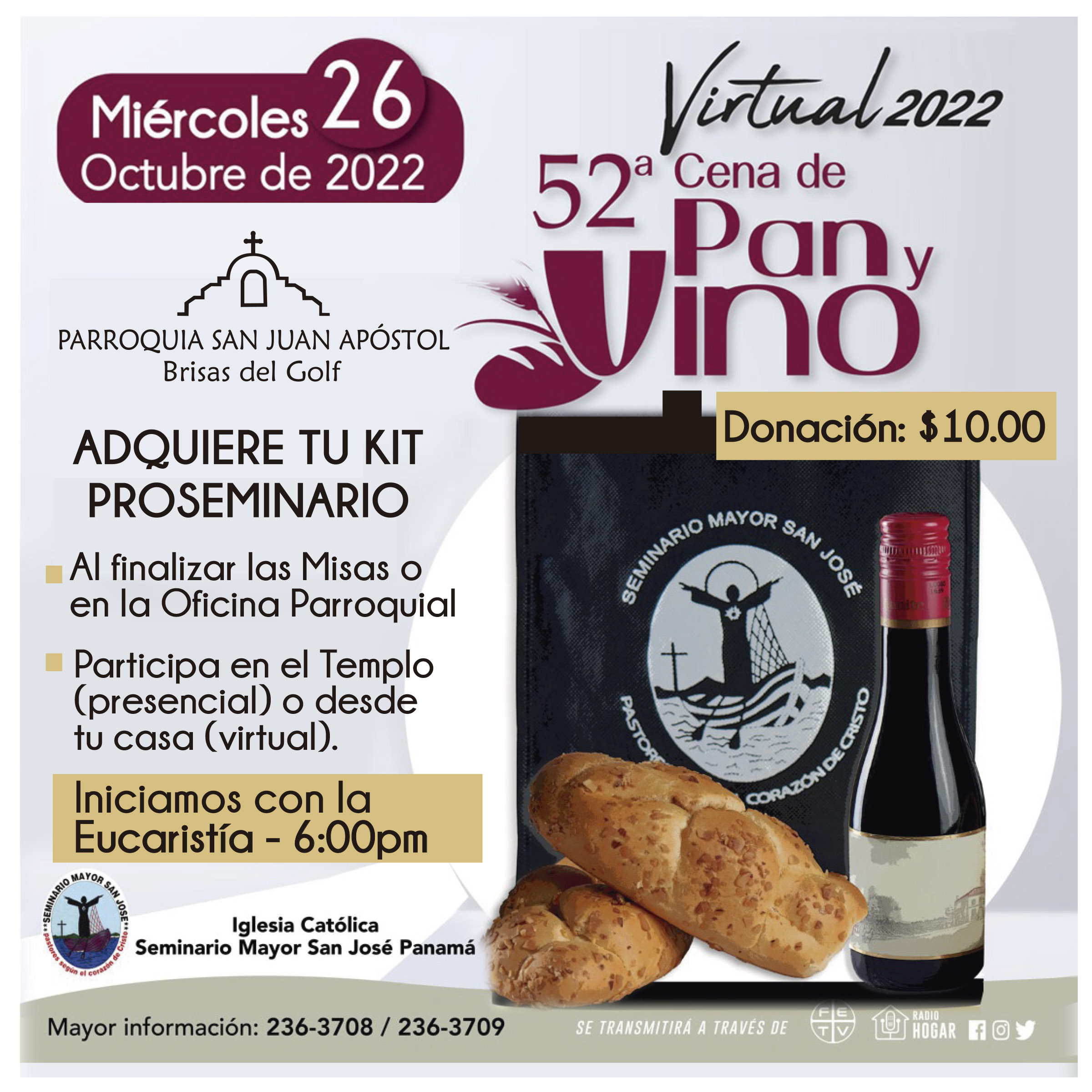 Te invitamos a participar de la 52a Cena de Pan y Vino (virtual). ADQUIERE TU KIT PROSEMINARIO Al finalizar las Misas o en la Oficina Parroquial «Participa en el Templo (presencial) o desde tu…