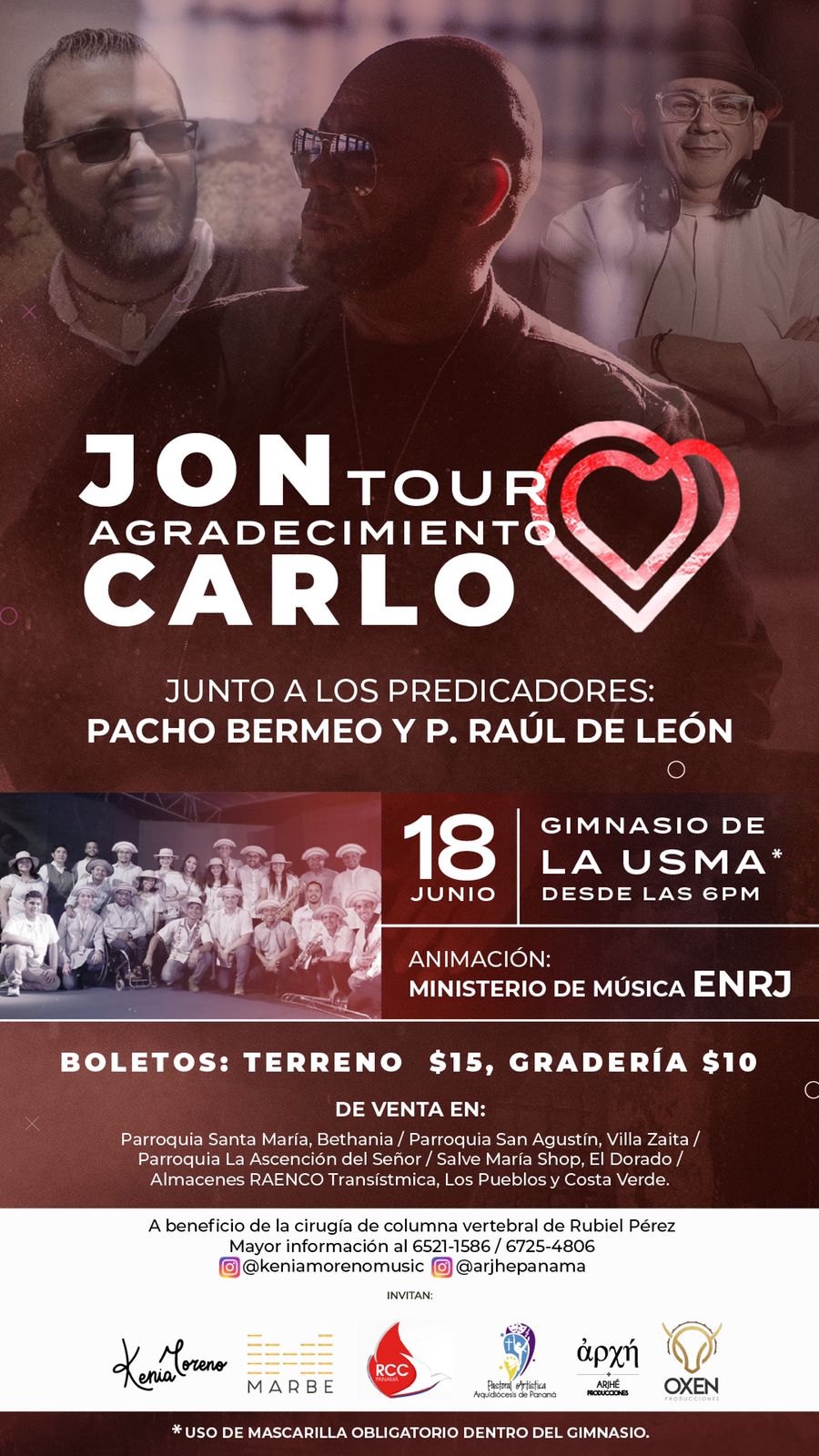 Te invitamos a participar este 18 de junio del concierto de Jon Carlos en su Tour Agradecimiento. Este evento se realizará en el gimnasio de la USMA a las 6 p.m. A beneficio de…
