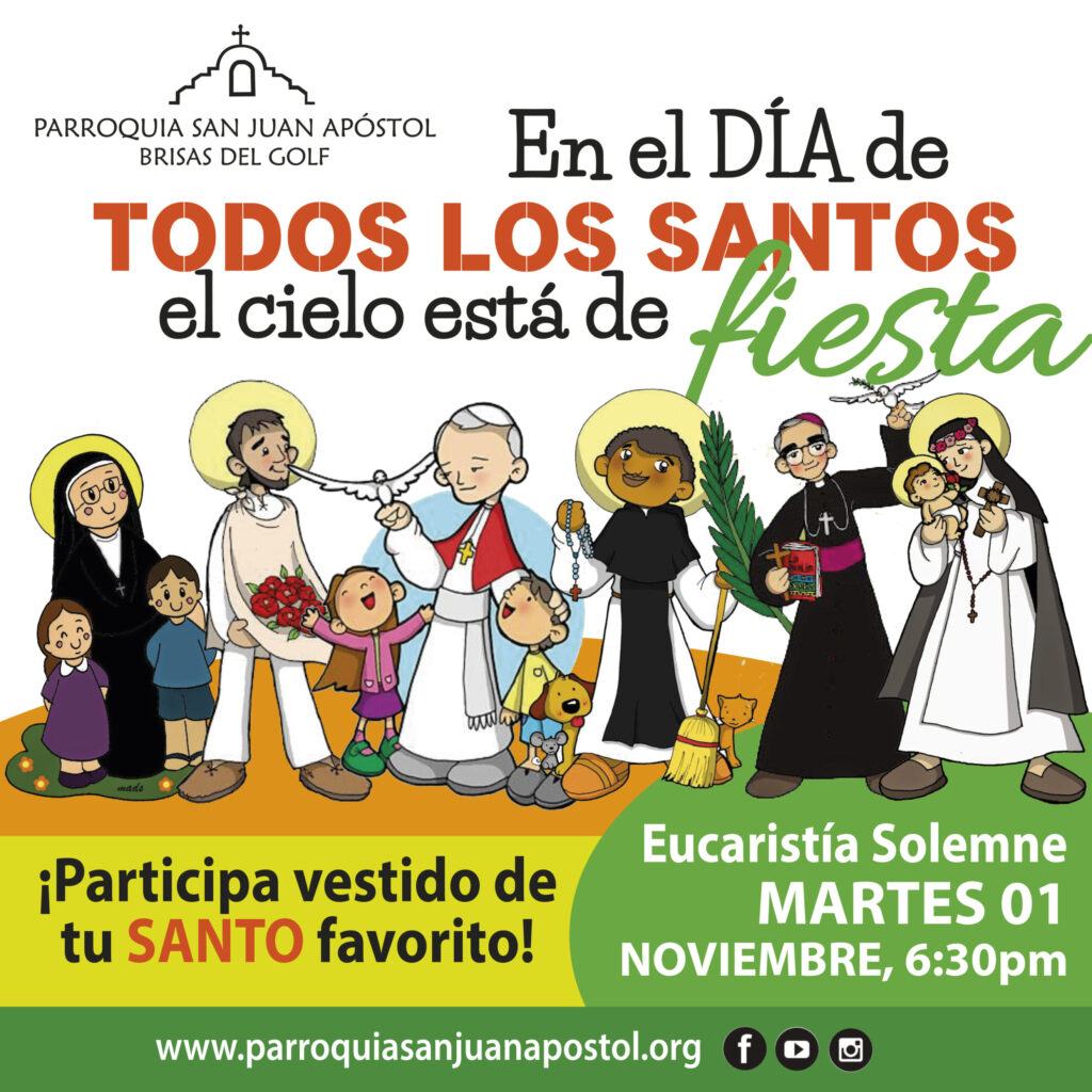En el día de Todos los Santos el cielo está de fiesta octubre 29, 2022 | No hay comentarios | Actividades Este martes 1 de noviembre participa vestido de tu Santo favorito en la Eucaristía Solemne que celebraremosa las 6:30 p.m. Te esperamos! Leer más