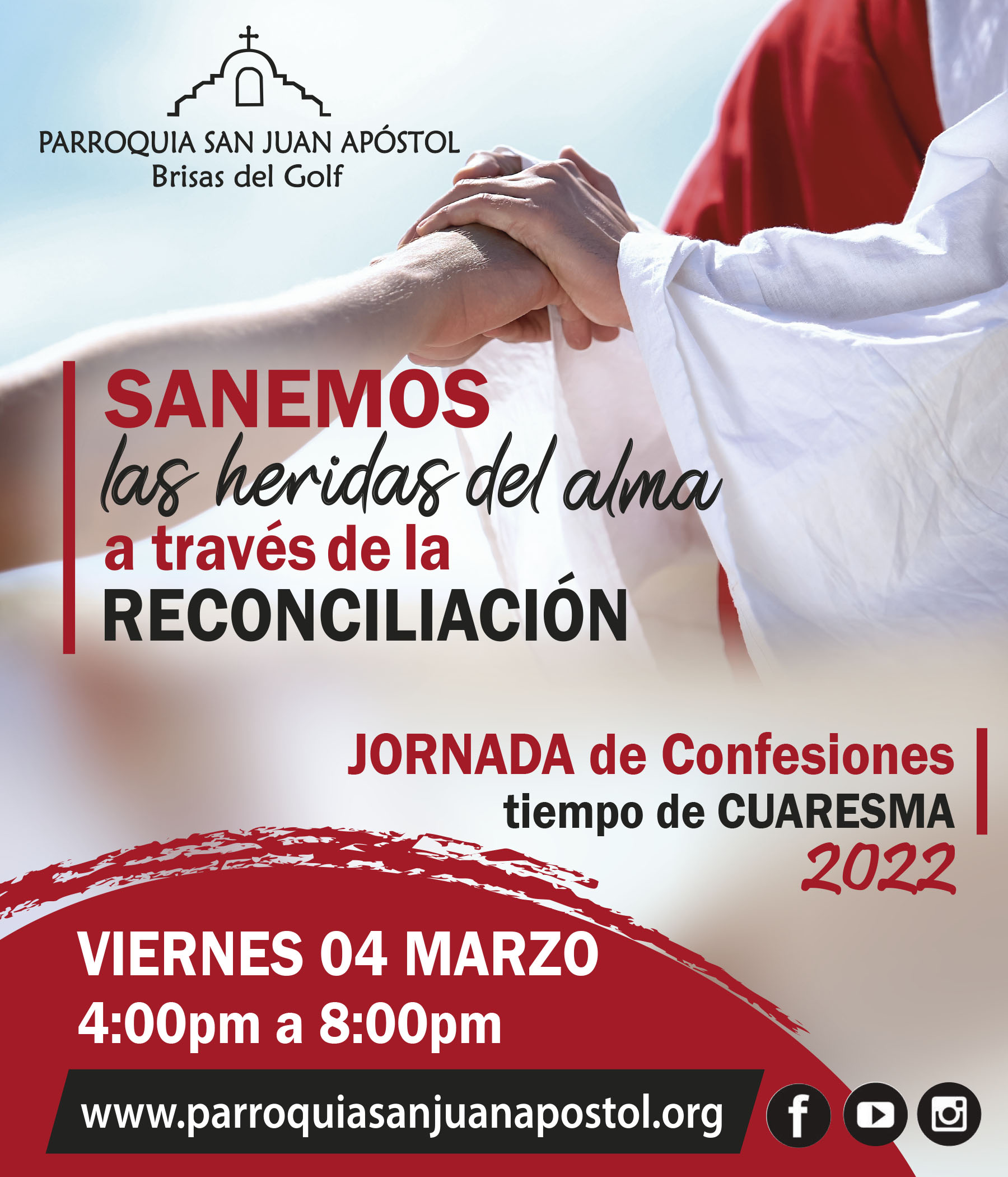 Sanemos las heridas del alma a través de la RECONCILIACIÓN. La Parroquia San Juan Apóstol te invita a participar de la Jornada de Confesiones – CUARESMA 2022, este viernes 04 marzo de 4:00 pm…