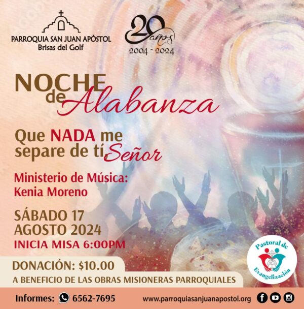 La Parroquia San Juan Apóstol – Brisas del Golf tiene el placer de invitar a todos los feligreses a una Noche de Alabanza titulada «Que NADA me separe de ti, Señor». Fecha: Sábado, 17…