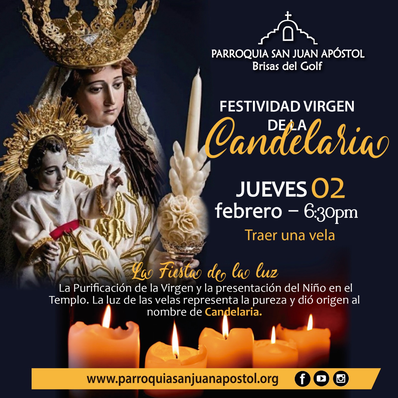 Celebremos con gozo y en comunidad a Nuestra Señora de la Candelaria, el día Jueves 02 de febrero a las 6:30 pm. Iniciamos con la Bendición de las luces en la entrada del Templo….